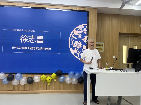 活动开场以“校史回忆”传递校庆温情。今年74岁的退休教师徐志昌老师精神矍铄,他以平实风趣的语言,为在场师生讲述学校初创时期的鲜活故事:从校址批复的筹备细节、学校更名的关键历程,到建校初期简陋的教学设施与电气系逐步完善的过程;从早期师生并肩奋斗的日常,到如今学院在人才培养、科研创新领域的发展成果。徐志昌老师将学校四十年校史中的烟火气与凝聚力娓娓道来,在分享尾声,他号召与会师生:“要以担当尽责、开拓进取、追求卓越的姿态,在各自岗位上发光发热,为母校四十周年校庆增光添彩。”