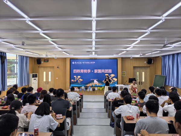 在学校四十周年校庆、国庆与中秋“三节同庆”的特殊节点,10月6日,电气与信息工程学院在阶梯教室101举办“四秩育桃李,家国共团圆”联欢活动。学院原党总支书记、退休教师徐志昌,学院党委书记赵建华,以及学院辅导员、学生骨干代表与百余名节假日未返乡的2025级新生共同参与活动,学院党委副书记耿会玲主持。