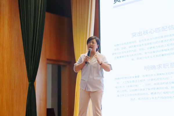 2025届自动化专业校友、现就职于衢州市慧城产业发展集团有限公司的何晓宇,结合自身求职经历分享实战经验,并从三个维度给出实用建议:一是认清秋招“黄金属性”,强调秋招参与企业多为行业头部单位,岗位稳定性强、晋升空间大,需重点聚焦;二是“打造针对性简历”,建议根据不同岗位需求调整简历重点,突出实习经历、项目成果与专业技能的匹配度;三是“主动出击多试多练”,鼓励学弟学妹积极参加线下宣讲会、线上笔试,通过实战积累面试经验,摒弃“等待观望”心态。 于亚东针对留衢就业(创业)政策与手续办理进行专项解读,现场演示三方协议线上申请流程,明确材料提交时限、信息填写规范及违约处理办法,帮助毕业生厘清政策细节与手续办理要点。 会议还特别邀请一级人力资源管理师、劳动关系协调师陈曦,以“技术简历优化与全流程面试攻略”为主题开展实战指导。