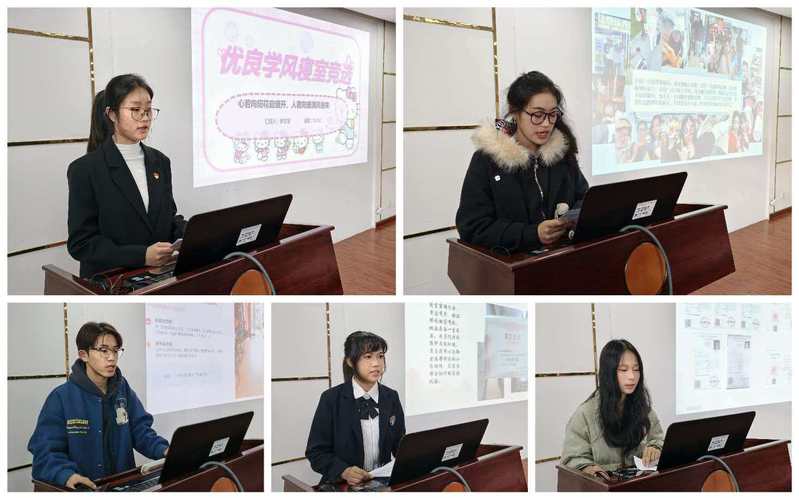 评选现场,入围寝室代表依次登台,围绕思想建设、学风营造、卫生管理、文化特色、人际和谐等核心维度,通过图文展示、事例分享等形式,生动讲述了寝室小“家”的创建故事与建设成果。评委组严格依据评选标准,从内容结构、展示创新性、成果典型性等方面进行综合评审,并对各寝室在逻辑优化、亮点凝练、展示升级等方面提出针对性改进建议,现场交流互动热烈,氛围浓厚。